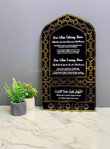 – Features engraved Duas for entering and leaving home, offering blessings and protection.